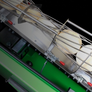 Las tapas de envases para la industria de alimentación se introducen en una centrífuga a través de un sistema de tolva con un volumen de llenado de 350 litros.