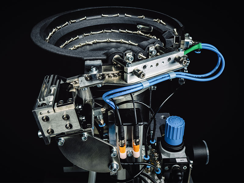 Para la alimentación estandarizada de tornillos, se ha desarrollado una configuración básica que se puede ajustar según el tipo de tornillo. Aquí, es posible una salida de hasta 60 procesos/minuto, que varía según el tipo de tornillo.