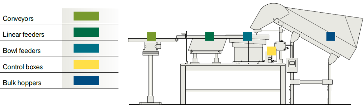 Se puede trabajar con la más diversa gama de formas y tamaños de cualquier tipo de material. Nuestras exclusivas unidades de tracción de múltiples imanes patentadas aseguran características de alimentación con una vibración mínima en la máquina de montaje. Todas las unidades de trasmisión y las cajas de control asociadas tienen marcado CE y se suministran con la aprobación de UL/CSA para el mercado de Estados Unidos cuando sea necesario.